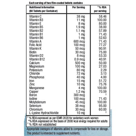 • Provides 13 essential vitamins and 14 essential minerals as per Indian RDA